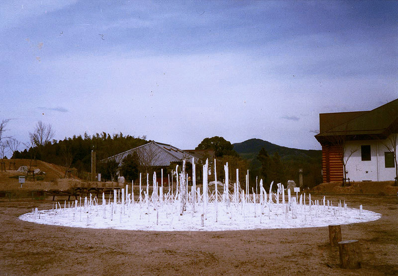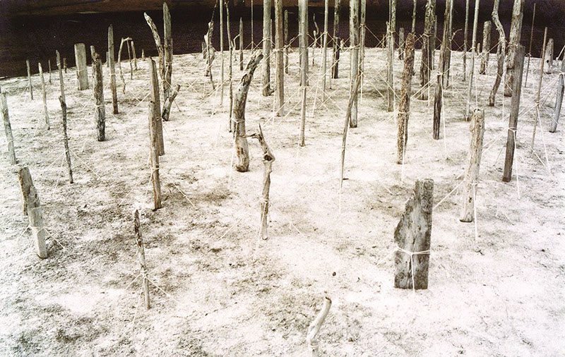 GATHERING 144 pieces of driftwood, rope,lime 1995